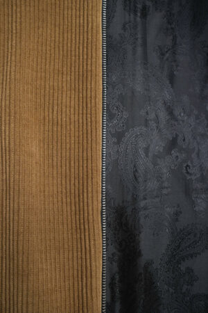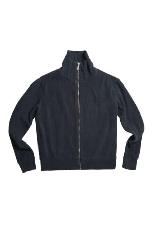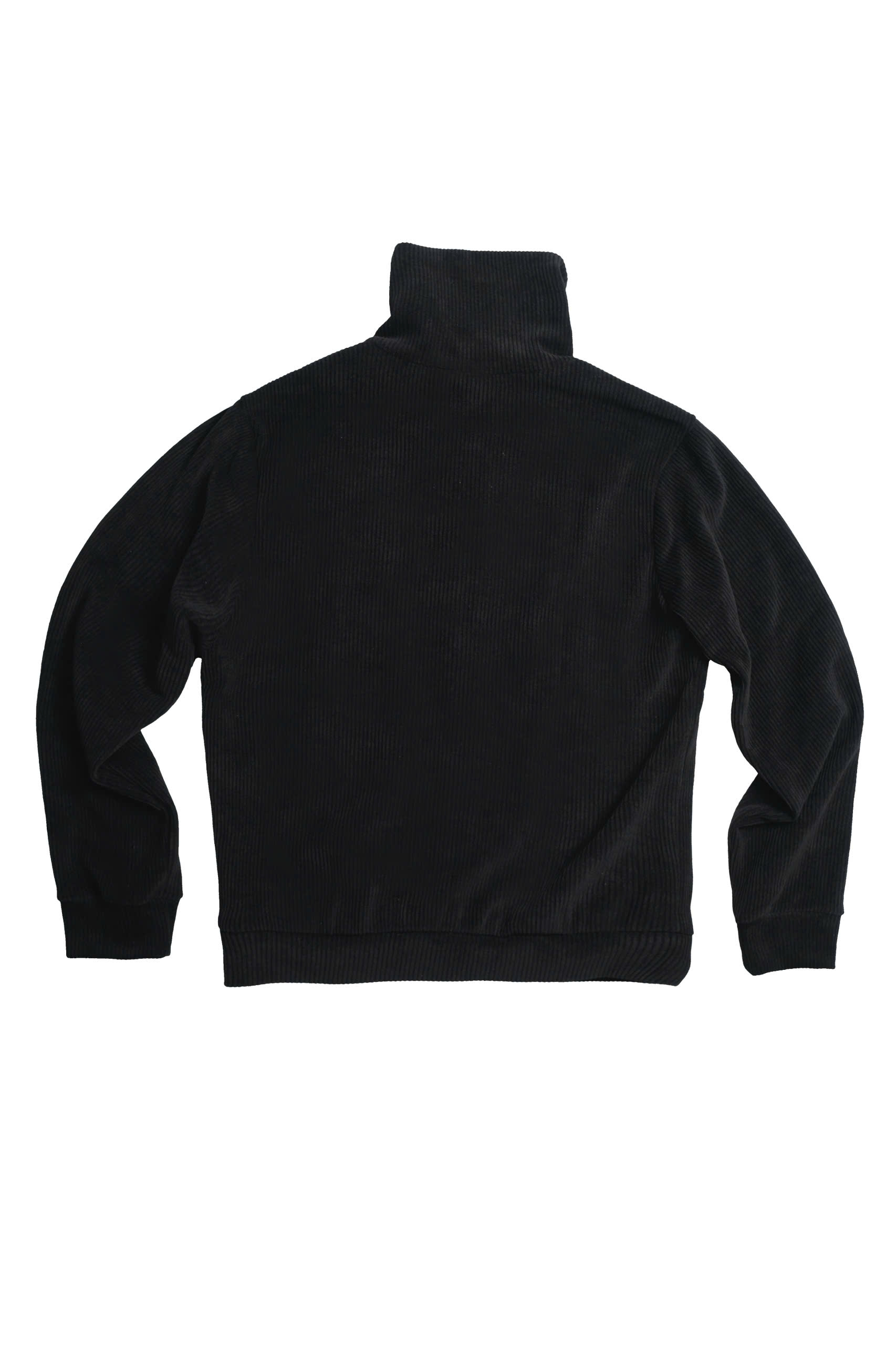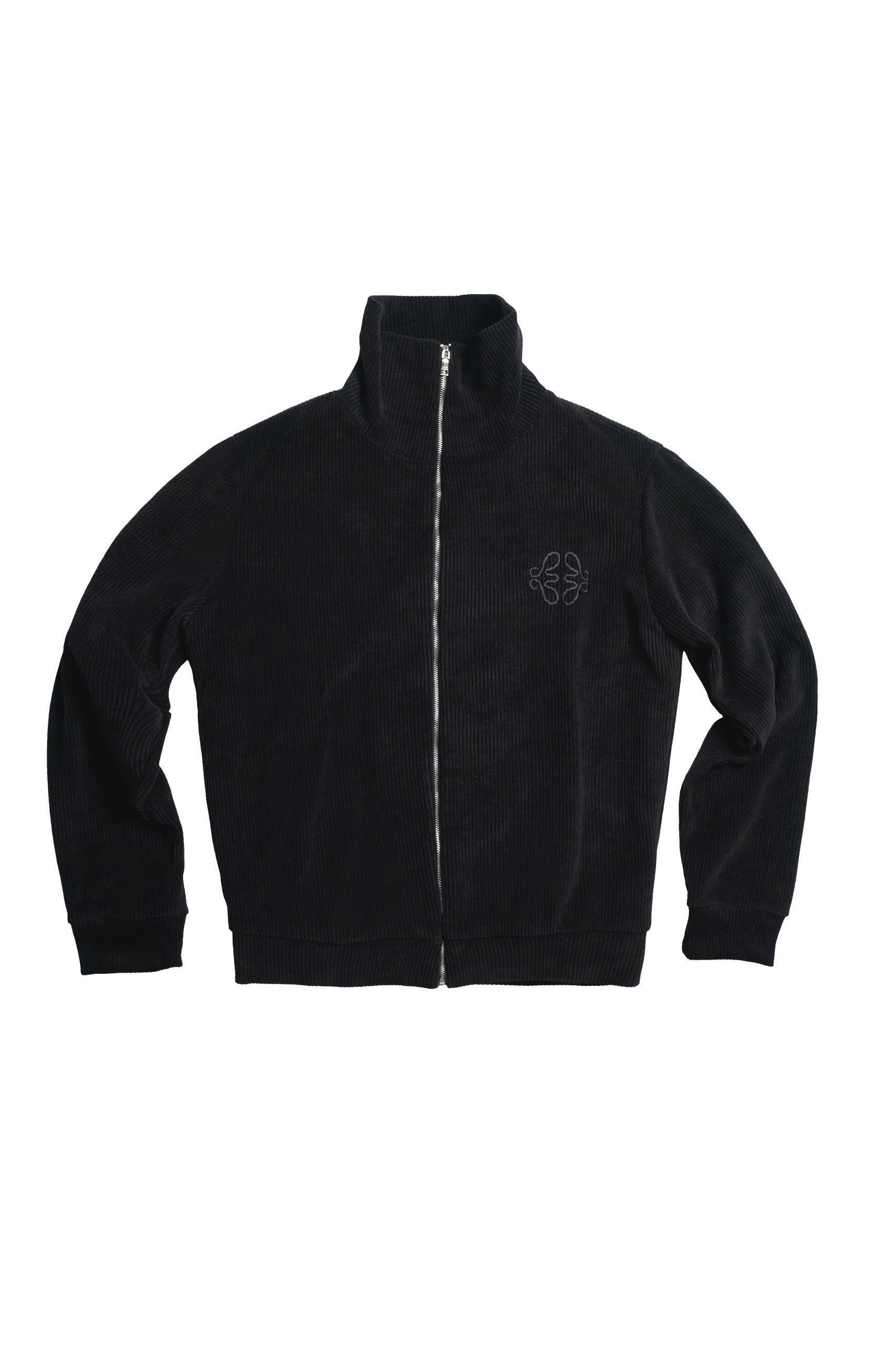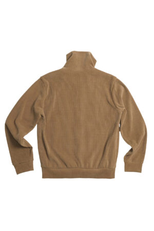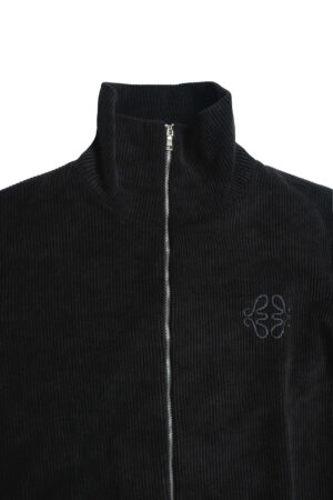 Chất liệu nhung rib-knit mềm, có độ dày vừa phải, bề mặt bắt sáng nhẹ khi di chuyển. Form áo gọn gàng nhưng không bó, cổ đứng ôm vừa, tạo cảm giác chỉnh chu mà vẫn thoải mái. Logo thêu cùng màu được đặt kín đáo đủ tinh tế.